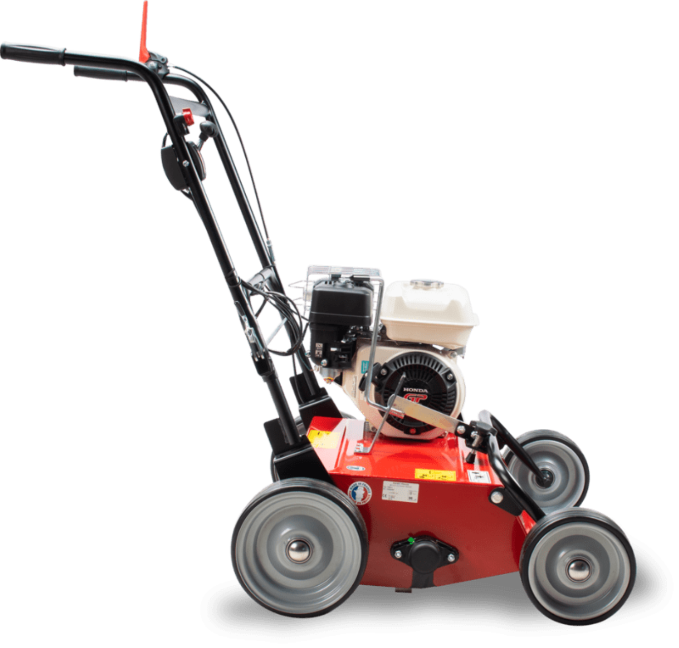 Der Vertikutierer Herkules 550 eignet sich sowohl für den privaten, als auch für den professionellen Einsatz. Das Modell 550 überzeugt durch Pendelmesser auf der doppelten Messerwelle. Gerade im professionellen Einsatz bietet das Gerät ausreichend Kraftreserven durch einen Honda-Profimotor. Der Führungsholm lässt sich bei beiden Modellen zum Transport klappen und 2-fach verstellen. Die Vertikutiertiefe lässt sich stufenlos über eine Spindel von - 1,5 cm justieren.