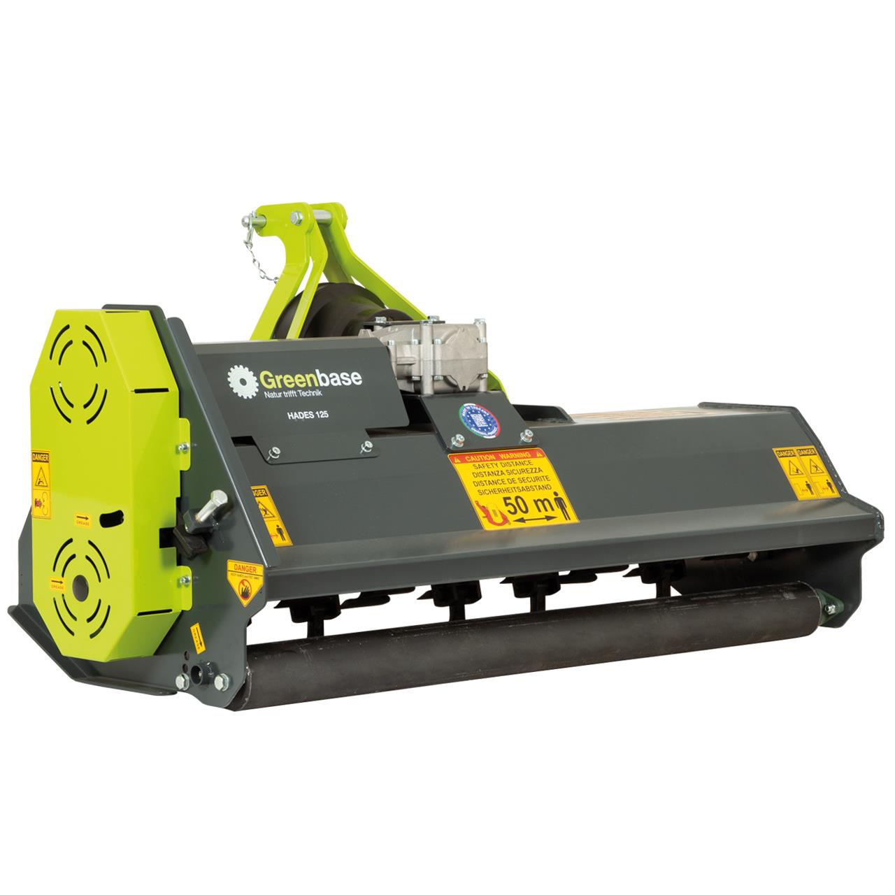 Der Greenbase-Schlegelmulcher Hades 125 M ist als leichter Mulcher gerade für Traktoren mit geringer Leistung (12-30PS / 9-22kW) geeignet. Er ist einfach zu bedienen und ideal zum Häckseln auf unkultivierten Feldern.